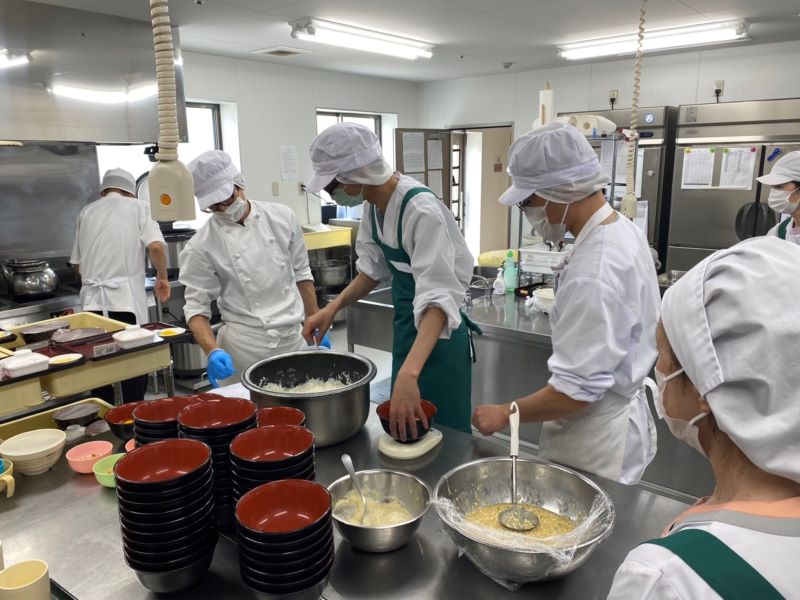 同社の主力サービス介護福祉施設向け委託給食は、常食、きざみ食、ミキサー食など、利用者の咀嚼機能や嚥下機能に合わせた介護食を提供しています。同サービスの特長は、施設と利用者双方の視点に立ったメニューを提案していること。季節を感じられるような献立、旬の地元食材をふんだんに取り入れた行事食を通して、利用者の食欲増進や摂食機能の向上に貢献しています。